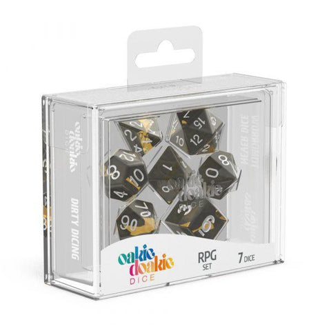 The best of both worlds: solid on the outside, translucent in between. These dice might remind you of a meandering river which flows on and on through the wilderness – perfect for anyone who is up for adventures and ready to face the unknown!